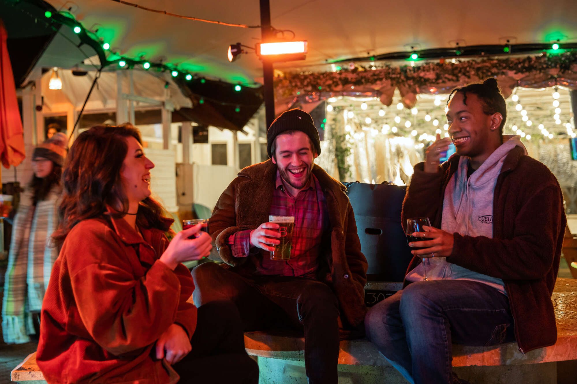 Step into our winter retreat — a spacious garden glowing under festoon lights, fully covered and perfectly heated. Settle into a cosy corner or grab a spot along our bench seating and make yourself at home. With the Burger Shack serving up the good stuff and the heaters keeping things toasty, it’s your go-to spot for laid-back afternoons and easy-going evenings, come rain or shine.